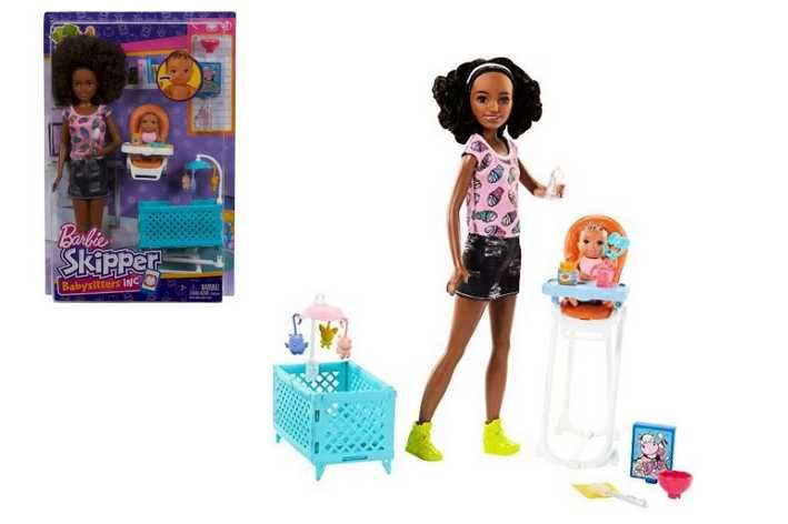 Mattel Barbie Chůva herní set s postýlkou černoška