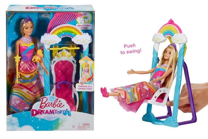 Užij si všechny druhy příběhů s touto panenkou Barbie®, trůnem a houpačkou v jednom a doplňky, protože když spolu se sestrami Barbie® a Chelsea™ vstoupíš do Dremtopie, probudíš se ve světě, kde se sny stávají skutečností.