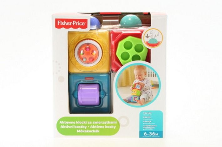 S akčními kostkami od Fisher-Price® zažije vaše dítě spoustu zábavy a legrace. Na každé ze 4 stran každé kostky nalezne děťátko 1 zábavnou hru: Učení písmenek, učení číslic, hru na jukanou a další zábavnou hru. V modré akční kostce se protáčí malý bubínek, v červené akční kostce je otáčivá kulička s malými kuličkami uvnitř a žlutá kostka je klikací. Tolik zábavy jen ve třech akčních kostkách! Zábavná hra se spustí stisknutím horní strany každé z kostek. Vaše miminko může všechny akční kostičky naskládat na sebe, jednoduchým stisknutím spustit zábavnou hru na každé z nich a pak už jen sledovat, co se na které děje. Tuhle hru si zamiluje a vy společně s ním, protože uvidíte, jak moc ho to baví a kolik při ní zažije legrace.