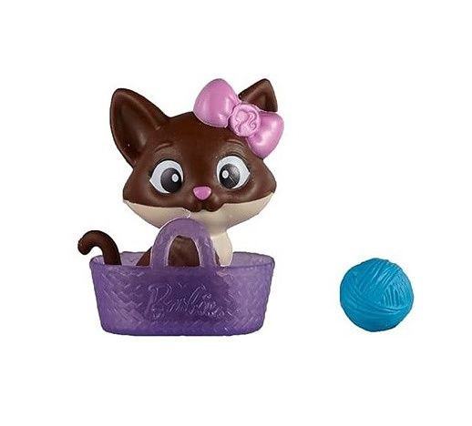 Mattel Barbie figurky mazlíčků 8x11,5 cm, balení obsahuje úžasnou figurku kočičky v košíčku a klubíčko, krásná originální zvířátka, lze použít jako doplněk pro panenky Barbie nebo sbírat jako samostatné figurky