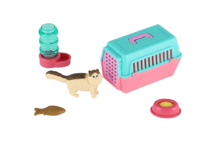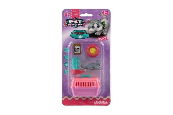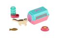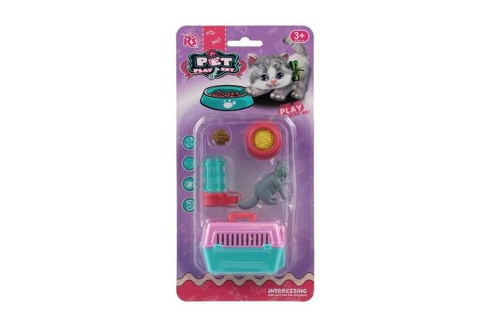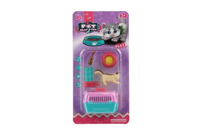 Mazlíček/kočka s přenosným boxem plast 4cm s doplňky 4 druhy na kartě 12,5x25x5cm
