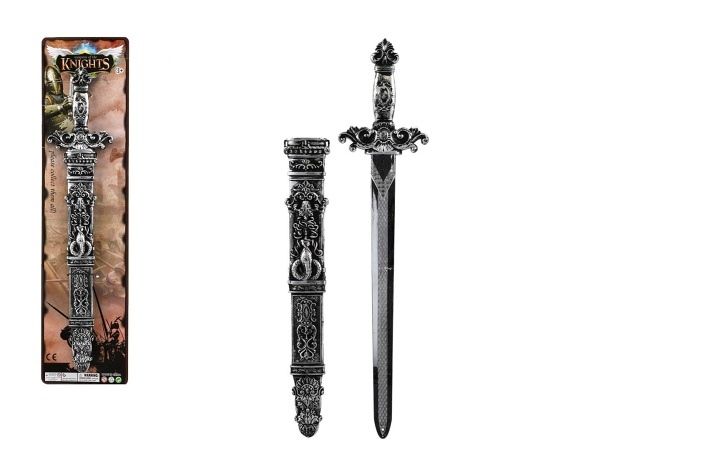 Meč rytířský s pouzdrem plast 50cm na kartě 14,5x58cm