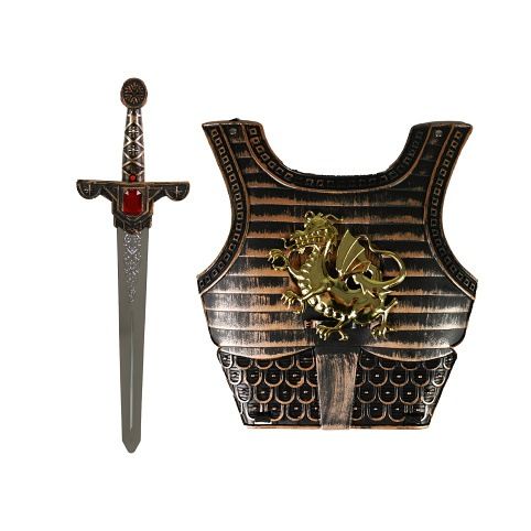 Chceš se stát statečným rytířem? S touto sadou bude tvá výbava kompletní a zaručeně vyhraješ každou bitvu! Set obsahuje meč dlouhý cca 56 cm, který vydává zvuky a ochranný štít. Součástí meče jsou 3 ks baterií typu LR44.