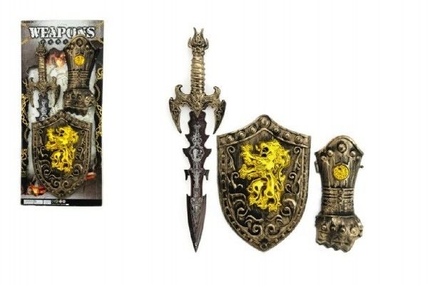 Sada meč se šítem a doplňky pro hru na rytíře. Staň se rytířem a zažij mnoho zábavy při hře na opravdového bojovníka.