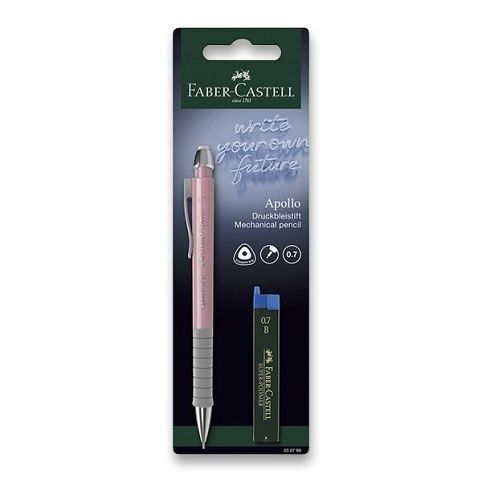 Mechanická tužka Faber-Castell Apollo s gumovou ergonomickou úchopovou zónou. Tuha o šíři 0,7 mm.