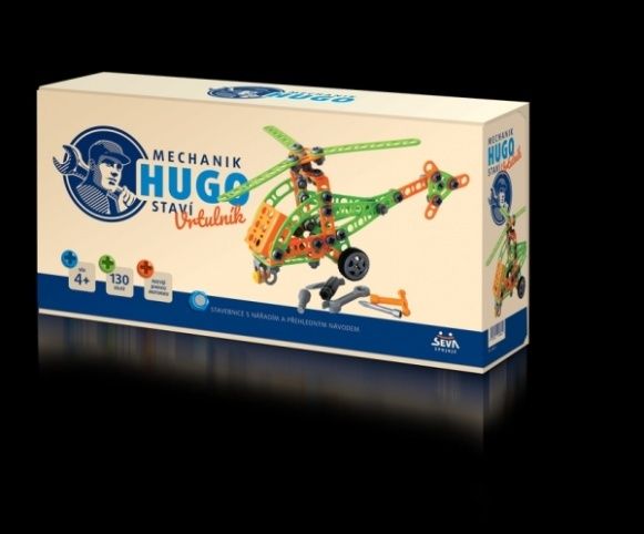 Mechanik Hugo staví Vrtulník Seva stavebnice s nářadím 130ks v krabici