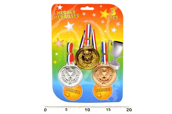 Sada medailí pro děti se stuhou na zavěšení kolem krku.