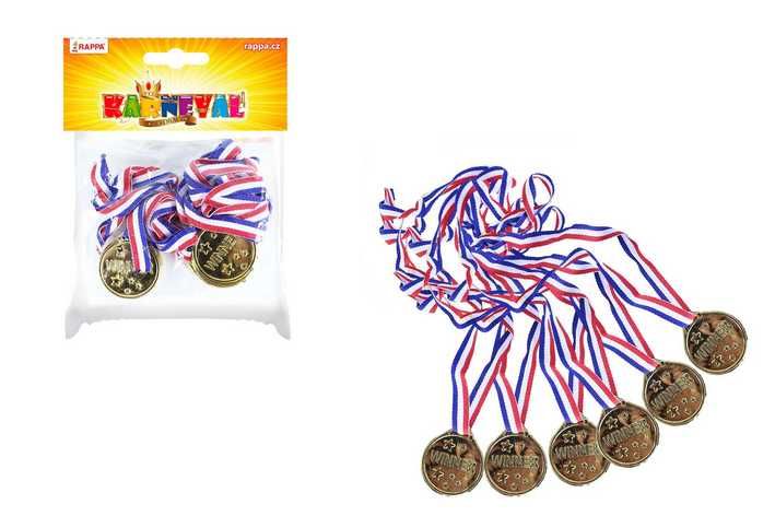 Oceň své kamarády opravdovými medailemi! Balení obsahuje 6 ks zlatých medailí na šňůrce v barvě trikolóry. Medaile jsou vyrobeny z PVC.