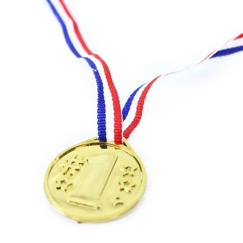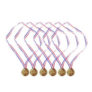 Oceň své kamarády opravdovými medailemi! Balení obsahuje 6 ks zlatých medailí na šňůrce v barvě trikolóry. Medaile jsou vyrobeny z PVC.