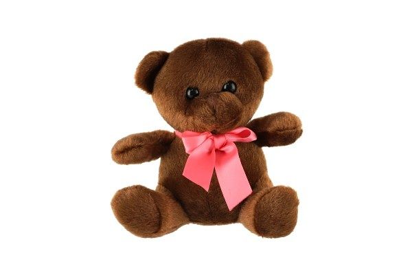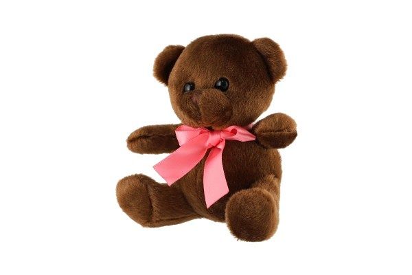 Medvěd/Medvídek sedící s mašlí plyš 15cm tmavě hnědý v sáčku 0+