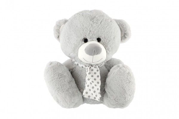 Medvěd/Medvídek sedící se šátkem plyš 35cm šedivý v sáčku 0+