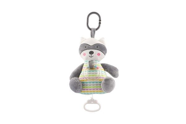 Hrací strojek se zvířátkem zaručeně upoutá pozornost Vašich malých dětí díky uklidňující melodii, kterou vydává. Délka melodie po natažení cca 1 minuta 20 vteřin. Plyšová hračka má také chrastítko.
