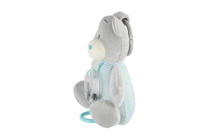 Medvěd natahovací hrací strojek chrastítko plyš 16x21,5cm modrý na kartě v sáčku 0+