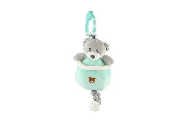 Natahovací plyšový medvěd s bambulkou hraje příjemnou melodii, která miminko uklidní a pomáhá mu při usínání. Hračku lze zavěsit za pomocí klipu na postýlku nebo kočárek. Hrací strojek je zabudovaný uvnitř medvídka, bambuka slouží jako natahovací klip.