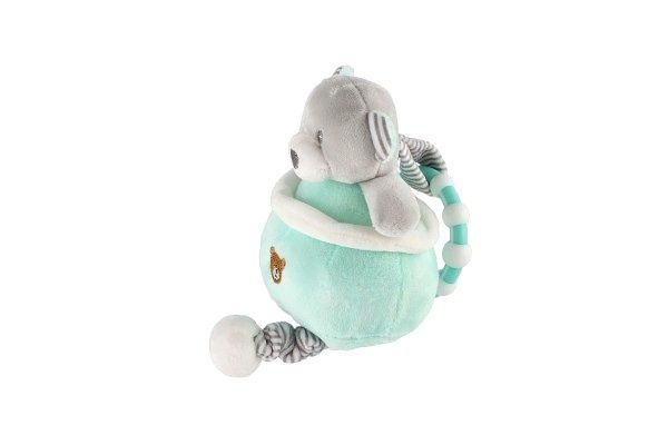Medvěd plyš 14cm závěs na postýlku/kočárek nat. hrací strojek zelený na kartě v sáčku 0+