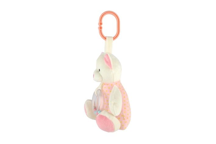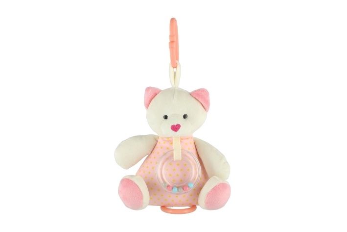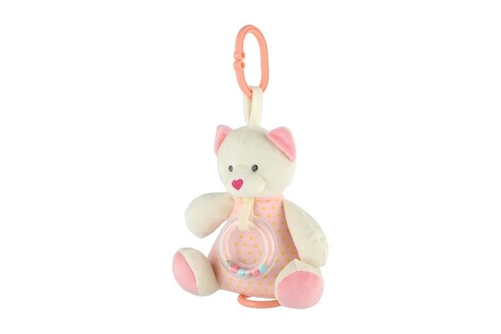 Roztomilý růžový natahovací medvídek hraje příjemnou melodii, která miminko uklidní a pomáhá mu při usínání. Hračku lze zavěsit za pomocí klipu na postýlku nebo kočárek. Hrací strojek je zabudovaný uvnitř medvídka