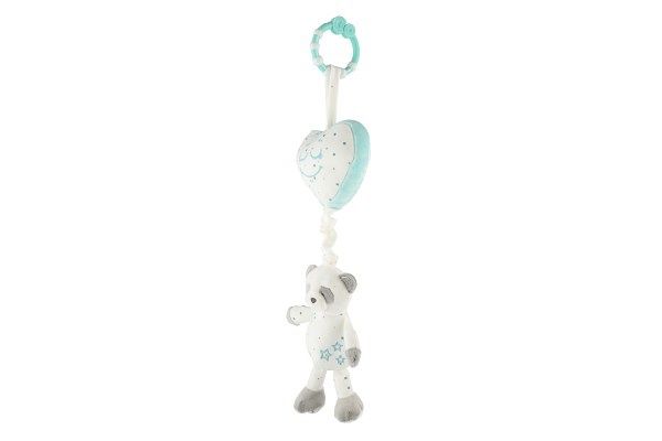 Natahovací plyšový medvěd se srdíčkem hraje příjemnou melodii, která miminko uklidní a pomáhá mu při usínání. Hračku lze zavěsit za pomocí klipu na postýlku nebo kočárek. Hrací strojek je zabudovaný uvnitř srdíčka, medvídek slouží jako natahovací klip.