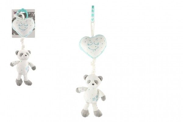 Medvěd se srdíčkem plyš závěs na postýlku/kočárek 50cm nat. hrací strojek modrý na kartě