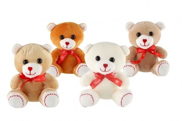 Medvěd sedící s mašlí plyš 16cm 4 barvy 0m+