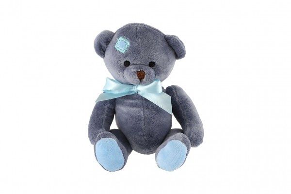 Medvěd sedící s mašlí plyš 20cm modrý v sáčku 0+