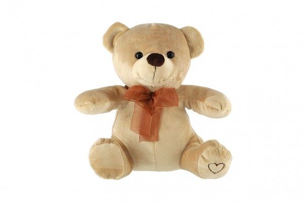 Medvěd sedící s mašlí plyš 22cm béžový v sáčku 0+