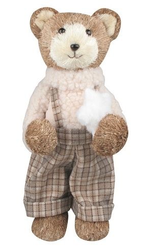 Medvěd ze sisálových vláken na postavení, 17 x 36 x 16 cm Tento medvěd ze sisálových vláken je originální dekorace, která vynikne v přírodní, zimní nebo rustikální výzdobě. Díky detailnímu zpracování působí medvídek roztomile a zároveň elegantně. Využití: Ideální pro aranžování zimních a vánočních dekorací, výzdobu oken, stolů, poliček nebo jako součást sezónních kompozic. Vlastnosti: vyrobeno ze sisálových vlákenrozměry: 17 x 36 x 16 cmstabilní – určený k postaveníDetailní přírodní vzhled. Originální dekorace pro milovníky přírodních materiálů. Tento sisálový medvěd přináší do interiéru teplo, roztomilost a nádech přírody – perfektní doplněk pro zimní i celoroční výzdobu.