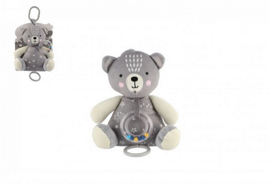 Natahovací plyšový medvídek hraje příjemnou melodii, která miminko uklidní a pomáhá mu při usínání. Hračku lze zavěsit za pomocí klipu na postýlku nebo kočárek. Hrací strojek je zabudovaný uvnitř zvířátka a plastové kolečko slouží jako natahovací klip. Rozměry balení 17 x 21,5 x 8 cm. Vhodné pro děti od narození.