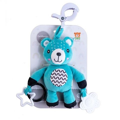 Roztomilý plyšový medvídek je skvělým kamarádem pro miminka již od narození. Díky praktickému závěsnému klipu jej lze jednoduše připevnit na kočárek, postýlku, autosedačku nebo hrací hrazdičku. Miminko tak může mít svého hebkého medvídka stále u sebe – ať už doma nebo na cestách.
