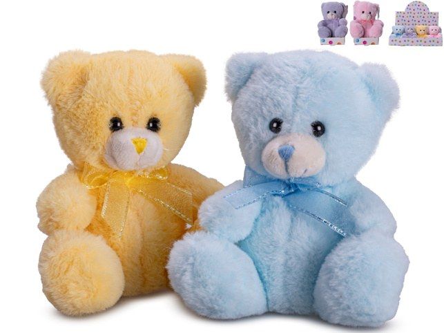 Medvídek plyšový 12cm sedící s mašlí 4barvy v krabičce