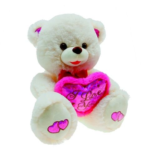 Plyšový medvídek o velikosti 38 cm. Medvídek má v tlapkách srdce s flitry. Vhodný pro děti od 3 let.