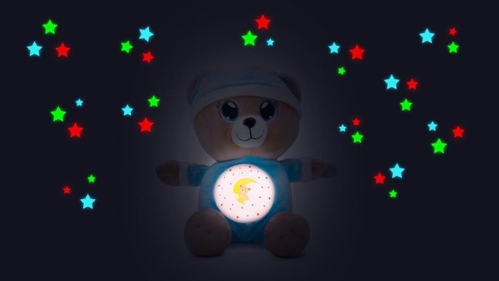 Každé malé dítě má svého mazlíčka na usínání, ke kterému se rádo tulí a cítí pocit bezpěčí. Medvídek Usínáček je k tomu jako stvořený. Stačí zmáčknout jeho kouzelné bříško a z pokojíčku je rázem říše snů. Medvídek Usínáček promítá na strop barevnou hvězdnou oblohu a hraje 4 uklidňující ukolébavky. Je heboučký, měkoučký, láká k mazlení. S Usínáčkem děti snadno usínají a mají klidnou celou noc.