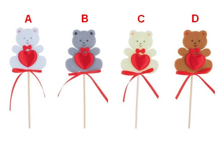 Medvídek z filcu se srdíčkem zápich 6,5cm 4 druhy