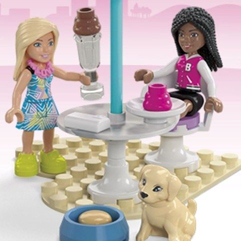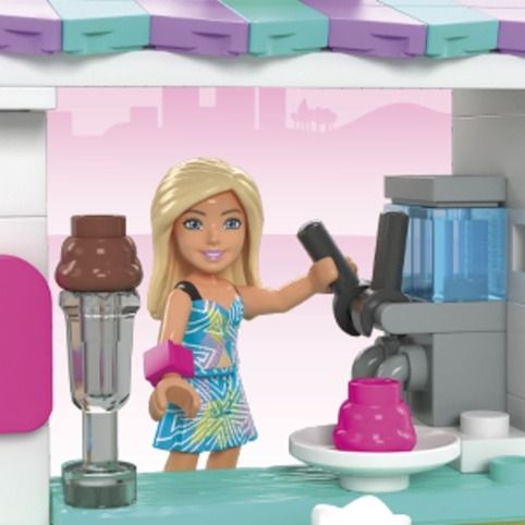 Děti si mohou vytvořit vlastní příběhy, když si vyzkouší provozování zmrzlinového stánku se 2 sestavitelnými mikropanenkami Barbie®. Tento herní set MEGA Barbie® kabriolet a stánek se zmrzlinou obsahuje stroj na zmrzlinu a různé příchutě kopečkové zmrzlin