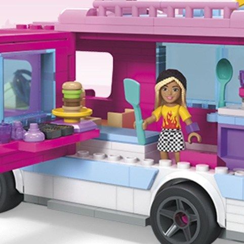 Při stavbě MEGA Barbie® Karavanu snů mohou děti popustit uzdu své fantazii. Tento postavitelný karavan snů obsahuje střešní postel a televizi, navíc zadní a boční dveře, které se otevírají pro snadný přístup do detailně propracovaného interiéru s kompletn