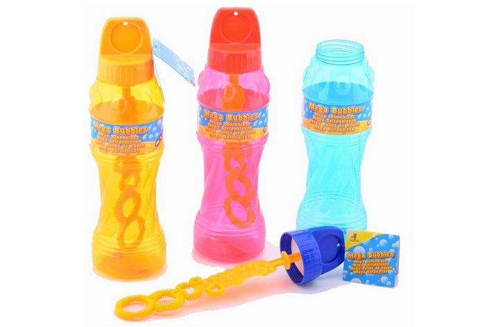 Mega bublifuk ve třech barevných provedeních s tvořítkem na bubliny ve víčku výrobku.
