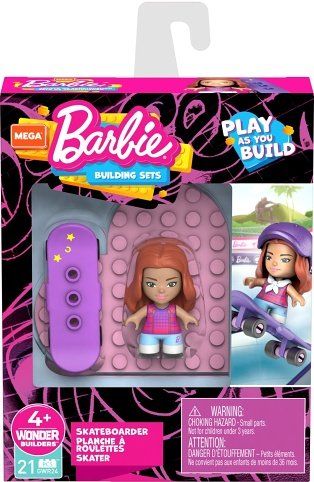 Když stavíte a hrajete si se stavebnicemi Barbie™, můžete být čímkoli. Objevte svou vášeň s tematickými doplňky k hraní rolí, jako je dalekohled, klavír, skateboard a další. Svou malou panenku Barbie™ si dokonce můžete pomocí 2 módních doplňků zdokonalit. Tyto stavebnice určené pro začátečníky nabízejí při sestavování vyprávění různých příběhů. Vyberte si ze 6 malých panenek Barbie™, astronoma, designéra, skateboardistu, hudebníka, sushi kuchaře nebo táborového průvodce. Každá stavebnice se prodává samostatně. Barvy a detaily se mohou lišit.