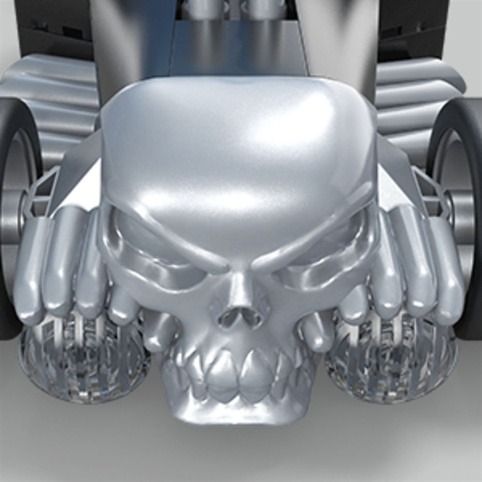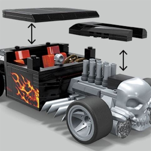 Tento MEGA Hot Wheels® sběratelský Bone Shaker byl postaven pro prezentaci ve vitríně. Tento model, který je větší a drsnější než menší kovový model, z něhož čerpá inspiraci, má detailně zpracovaný interiér a motor. Je z estetického hlediska přesný s orig