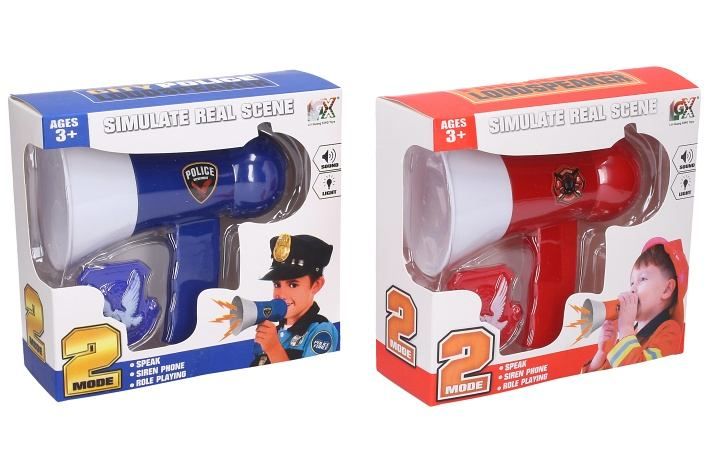 Megafon záchranné složky. Velikost 16 cm. Balení obsahuje megafon a odznak. 2xAAA baterie nejsou součástí. 2 varianty - hasiči, policie.