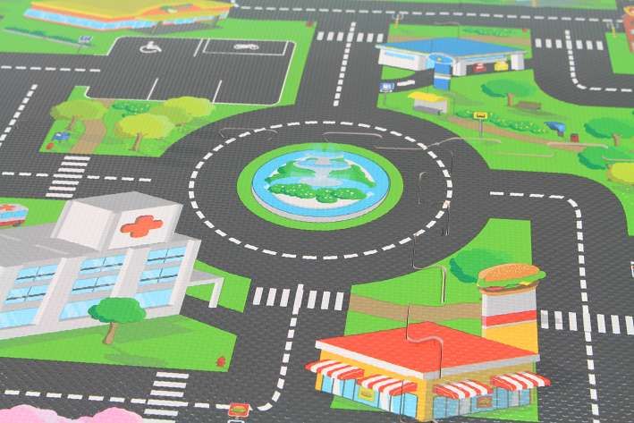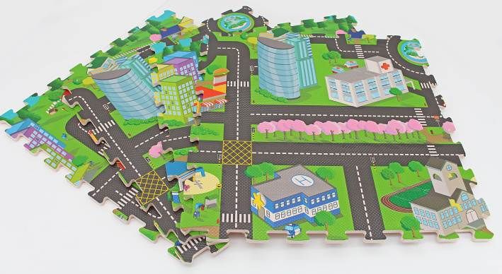 Postavte dětem město v podobě pěnového koberce - puzzle o velikosti 118 x 118cm.