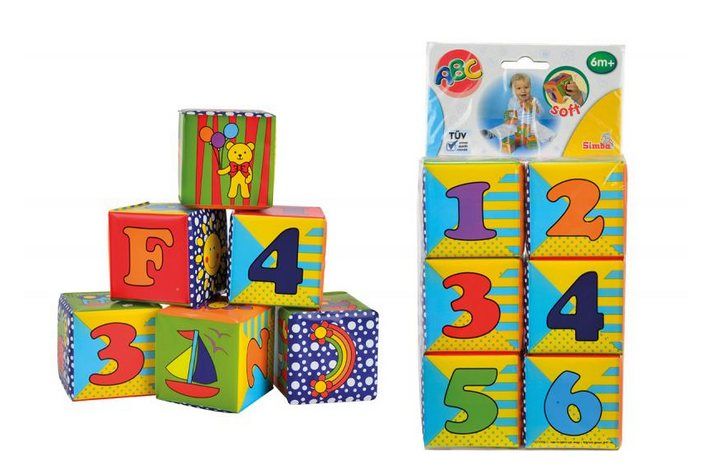 Balení obsahuje 6 měkkých kostiček pro nejmenší. Velikost kostky 8 x 8 cm. Veselé barvy, obrázky zvířátek, čísel i písmen.