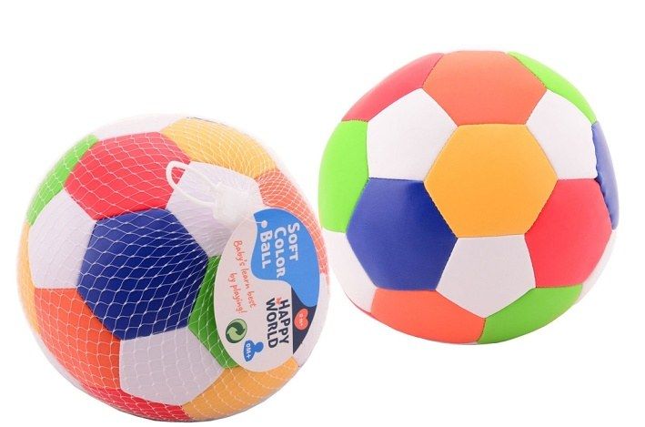 Pestrý měkký míč pro nejmenší děti. Vhodné od narození. Učí děti