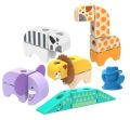 Melissa & Doug Blockables™ – spoj, postav, hraj si! Masivní dřevěné stavební bloky na spojování a hraní jsou ideální pomůckou pro děti od 2 let, které si při hře rozvíjejí klíčové dovednosti – jemnou motoriku, logické myšlení, schopnost přiřazování, vyprávění příběhů i sebevědomí – a to vše zábavnou a tvořivou formou. Barevné dřevěné dílky se snadno dětem snadno drží a díky velkým plastovým spojkám je mohou děti snadno spojovat i rozpojovat. Ilustrovaný návod ukazuje, jak z Blockables™ sestavit safari zvířátka s různými texturami – zebru, aligátora, lva s plstěnou hřívou, slona s plstěnýma ušima a žirafu. Děti ale mohou jednotlivé díly i volně kombinovat a vytvářet vlastní postavičky podle fantazie. Děti si mohou svou sbírku snadno rozšířit – 34dílná sada Safari je plně kompatibilní se všemi ostatními sadami Blockables™. Obal se dá rozložit a proměnit v hrací plochu a všechny díly lze po hře uložit do pevné kartonové krabice s měkkým uchem pro snadný úklid a přenášení. Patent čeká na schválení. Tento produkt je certifikován organizací Forest Stewardship Council (Rada pro správu lesa). Certifikace FSC zaručuje, že výrobek pochází z odpovědně obhospodařovaných lesů, které mají ekologické, sociální a ekonomické přínosy a zajišťují ochranu lesů pro budoucí generace