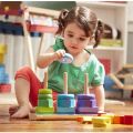Spojte a roztřiďte těchto 25 barevných dřevěných kousků. Kruhy, osmiúhelníky a obdélníky je možné navléknout na tři kolíky, narovnat na sebe nebo seřadit podle tvarů, velikostí a barev. Děti si procvičují jemnou motoriku a učí se rozeznávat tvary a barvy.