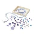 S touto dřevěnou soupravou korálků si můžete vytvořit náhrdelníky v odstínech fialové barvy se třpytivým efektem. Korálky rozvíjejí jemnou motoriku a fantazii dětí.