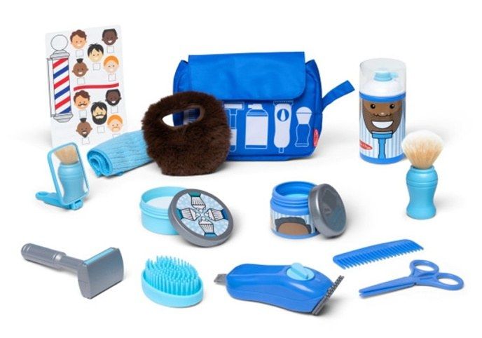 Jeden střih, prosím, a upravte i vousy. S touto bohatě vybavenou sadou si děti od 3 let mohou otevřít vlastní holičství a nabídnout zákazníkům kompletní péči. Ať už jde o holení, zastřihování vousů nebo tvarování kontur, díky realistickému příslušenství se děti během hry cítí jako opravdoví kadeřníci a holiči. Stačí přemluvit tatínka, bráchu nebo kamaráda – jednoduše nasadí nastavitelný plnovous a členové rodiny jsou připraveni. Pro tradiční holení napěňte mýdlo v kovové dóze pomocí štětky na holení a „napěňte“ zákazníka. Poté přichází na řadu nůžky. ro moderní vzhled sáhněte po pěně na holení a strojku, který při zatažení za páčku jemně vibruje (bez potřeby baterií). Nakonec použijte válečkový holicí strojek pro dokonale hladkou tvář. Podívejte se do ručního zrcátka, které lze postavit i na stůl, naneste trochu pomády do vlasů a upravte účes hřebenem nebo kartáčem. Oboustranná kartička znázorňuje všechny dostupné služby. Po skončení hraní lze vše uklidit do přiložené tašky, aby bylo příště vše po ruce. Už více než 35 let značka Melissa & Doug vytváří detailně propracované hračky pro realistickou rolovou hru, které podporují rozvoj motoriky, sociálních dovedností i komunikace. Vyprávění příběhů začíná s Melissa & Doug.