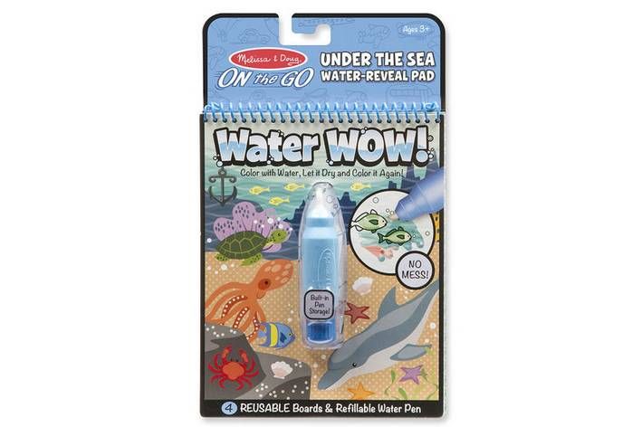 Čisté malování! Tyto "vodní" omalovánky obsahují čtyři znovupoužitelné stránky a znovuplnitelné vodní pero. Použijte vodní pero, jehož tahy se zobrazí živé barvy na jednotlivých obrázcích. Potom nechte stránku usušit a obrázek opět zmizí a znovu po navlhčení objeví. Omalovánky obsahují čtyři obrázky. Vodní pero se snadno drží a vkládá se do úložné schránky na přední straně omalovánky, což činí Water WOW pratickou omalovánkou i pro cestování.