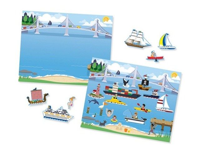 Podložky s různými tématy lze dozdobit opakovaně použitelnými polepkami. Položka obsahuje různá témata v assortu např. Farma, lodě, oblékánínebo město.