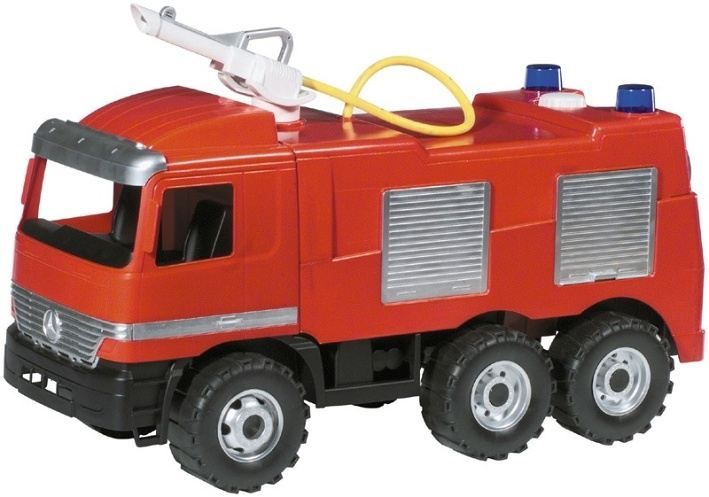 Mercedes požární auto o velikosti 65×26×38 cm, s plně funkčním vodním dělem, velikost nádržky na vodu 1, 6 litru, dostřik vody až 8metrů. Lze použít jako odráželo. Nosnost 50 kg. Věk 3+.