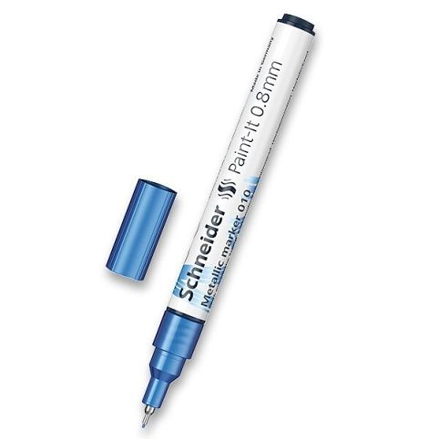 Kreativní popisovač Schneider Paint-It 010 v metalických barvách a jeho inovativní technologie umožňuje čisté a rovnoměrné nanášení barvy. Použití hliníkových vloček potažených barevnými pigmenty zajišťuje vysoce kvalitní metalický efekt. Vhodný pro použití na celou řadu povrchů – ideální na tmavé, nesavé povrchy. Šíře stopy 0,8 mm.