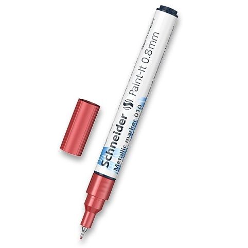 Kreativní popisovač Schneider Paint-It 010 v metalických barvách a jeho inovativní technologie umožňuje čisté a rovnoměrné nanášení barvy. Použití hliníkových vloček potažených barevnými pigmenty zajišťuje vysoce kvalitní metalický efekt. Vhodný pro použití na celou řadu povrchů – ideální na tmavé, nesavé povrchy. Šíře stopy 0,8 mm.